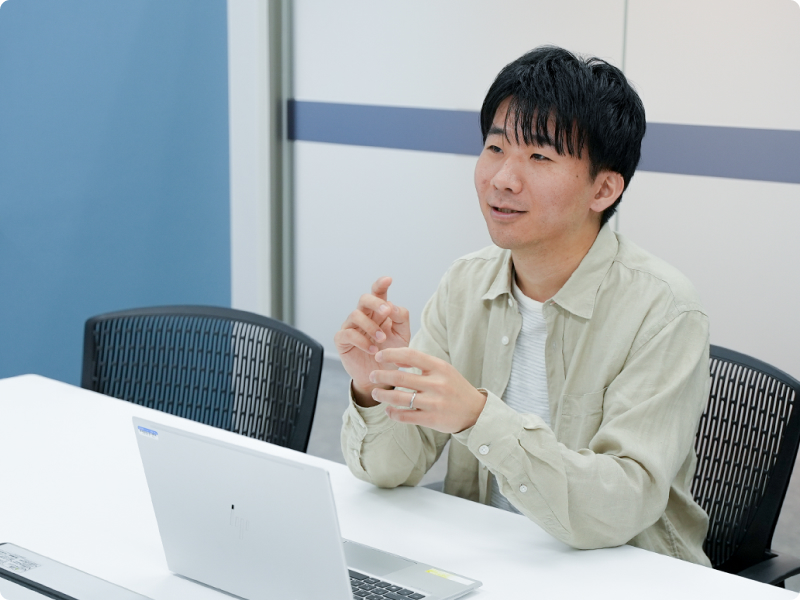 私の業務は主に設計やコーディングに集中していますが、短期的な目標として上流工程、特に要件定義から携わりたいと考えています。中長期的な目標としては、開発部門でチームリーダーを務めることや、社内業務における人材教育にも興味があります。