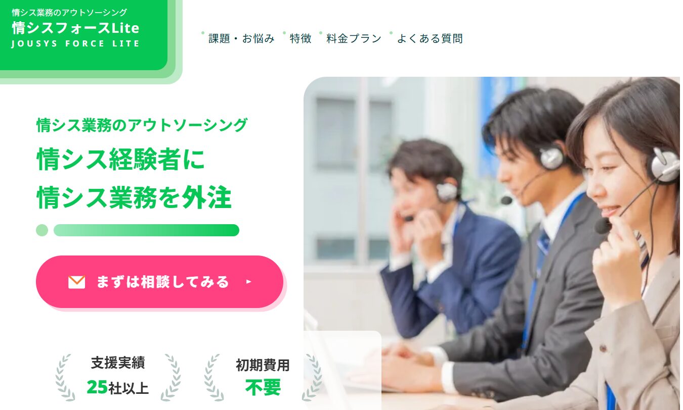 情シス・エンジニア経験者による定常業務のサポートが受けられるアウトソーシングサービス。最短2週間という短期間でスムーズに業務をアウトソーシングできるスピード対応が特徴で、ワンオペ体制・1人情シスなど、中小・中堅企業に多いリソース不足の解消に特化しています。